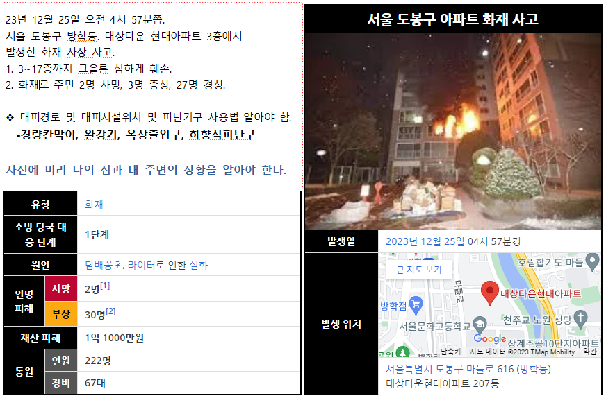 | 다세대 주택 주차장 화재 현장! 서울 성북구 (0) | 2024.01.08 |